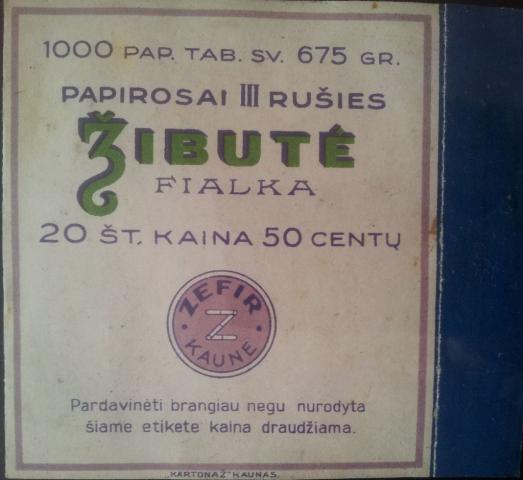 Tarpukario Lietuvos papirosai Žibutė stovis labai geras