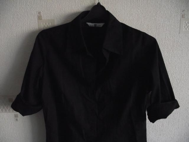 Paprasti juodi marškinukai, rankovės 3/4. Laisvesnis M arba L.