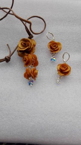 kolje ir auskarai, polimerinis molis ir svarovskio drugeliai