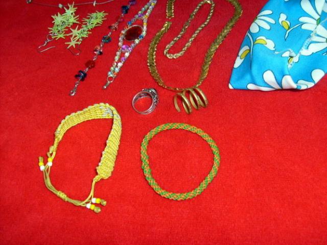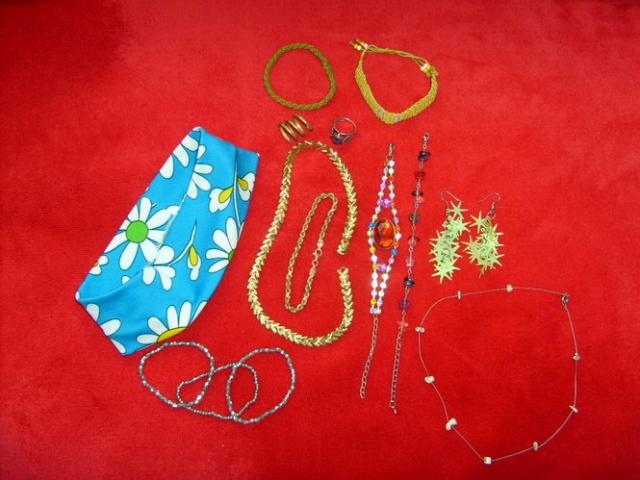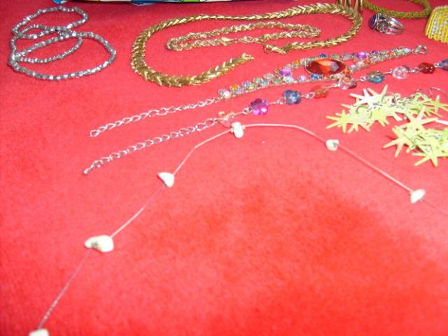 Ivairus papuosalai. Grynuju metalu nera. Idomiausia galbut ta desinej pusej apacioj esanti grandinele. su baltais akmeneliais. Papuosalai beveik visi visai nenaudoti.