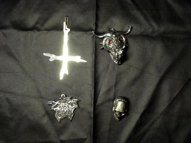 1. Plokščias apverstas kryžius 2. grupės "Darkthrone" logotipas 3. žveries galva, raudonos akys, dešinėj pusej nulūžęs ornamentas, matosi tik įsižiūrėjus 5. kaukoliukas