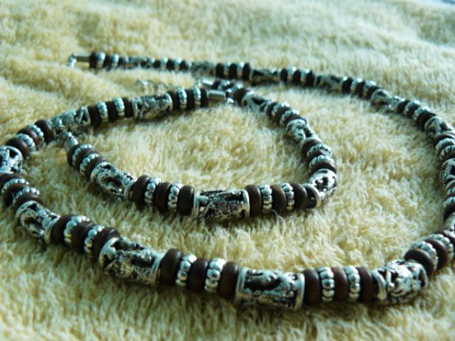 Naujas, nenešiotas papuošalas. Medinės ir metalinės detalės. Deje apyrankės jau nebėra.