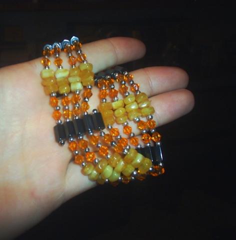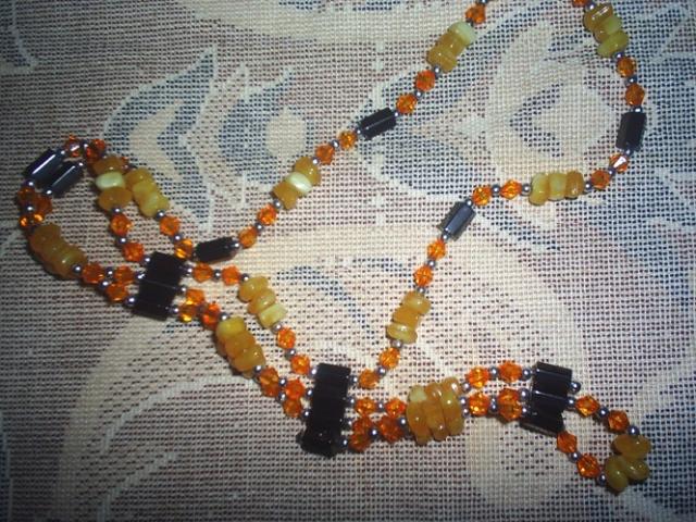 labai grazus, primena gintara, galima nesiot ivairiai, tiek ant kaklo, tiek ant rankos, as net ant galos buvau sugalvojus vietoj juostos ir lb grazu :)