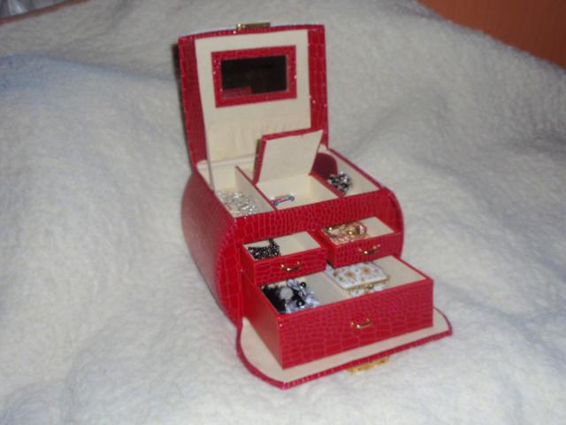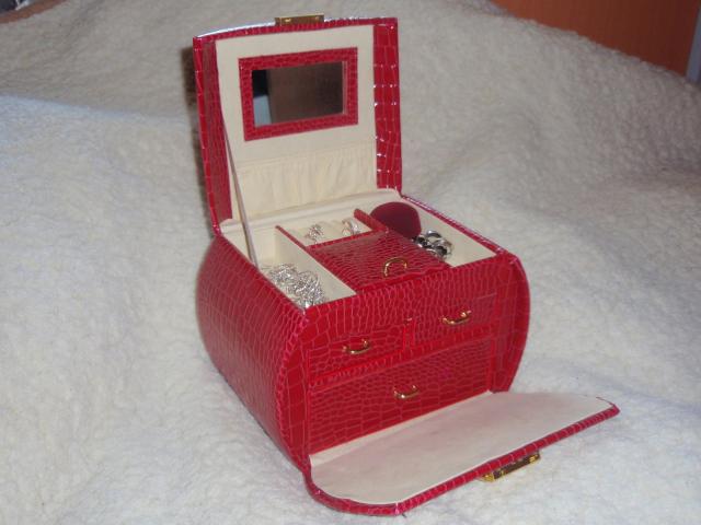Pakankamai didelė, tikros odos, raudonos spalvos papuošalų dėžutė. Mokėta ~200lt. Pirkau Klaipėdos Akropolyje, kažkurioje parduotuvėje. Be defektų.