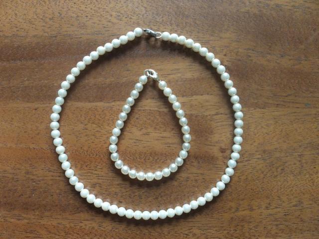 Vėrinys ir apyrankė, Perlų vėrinio imitacija, Apyrankės apimtis - 19,5 cm, Vėrinio apimtis - 41 cm