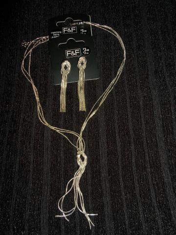 Grandinėlė ir auskarai. Sidabrinės spalvos. Nauji.