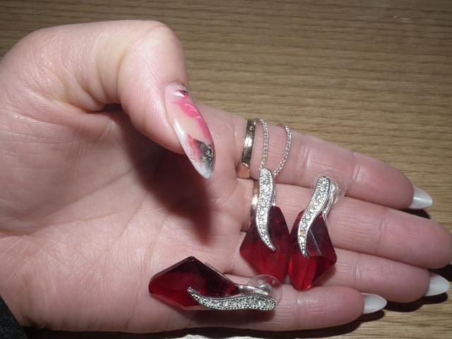 dėvėtas tik keletą kartų ,atrodo prabangiai,vieno auskariuko pameciau vieną smulkią akutę,bet ten nesimato