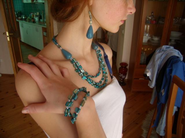 Papuošalų rinkinys (vėrinys,auskarai,3 apyrankės)