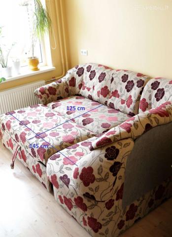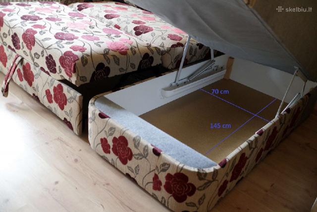 Gerai išlaikytas, patvarios medžiagos kampas su miegamu išvažiuojamu mechanizmu ir talpia patalynės dėže. Išmatavimai 205x155cm. Detalesni išmatavimai nurodyti nuotraukoje. Lovą reikėtų pasiimti iš 1 aukšto. Julius, 860138140, Vilnius