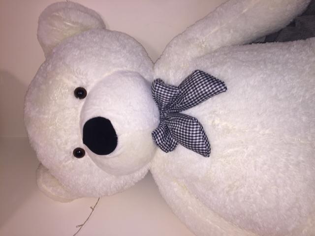 Parduodamas minkštas, pliušinis meškinas. Meškinas beveik naujas, būklė 10/10, nes pragulėjo maiše. Jis yra baltos spalvos, turi juodai baltą kaspiną po kaklu. Nugaroje yra užtrauktukas, tad yra galimybe skalbti. Sveria apie 4 kg, ilgis 160. Pirktas už 80 eurų. Kaina gali būti derinama.