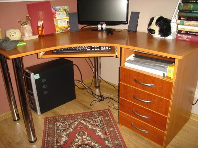 Brolis persitvarkė kambarį ir kampiniam stalui nebeliko vietos. Naudotas labai mažai, jokių įbrėžimų. Pirmoje nuotraukoje - lygiai toks pats stalas, tik tamsesnės spalvos ir nufotografuotas tam, kad matytumėte, kaip atrodo sukonstruotas (šiuo naudojuosi aš). Prašom! Kreiptis: 860281668 arba 860256408. Klaipėda/Gargždai. Kaina - 370.00 lt. Klaipėdos rajone yra galimybė atvežti ir užnešti (kainuotų apie 40 lt).