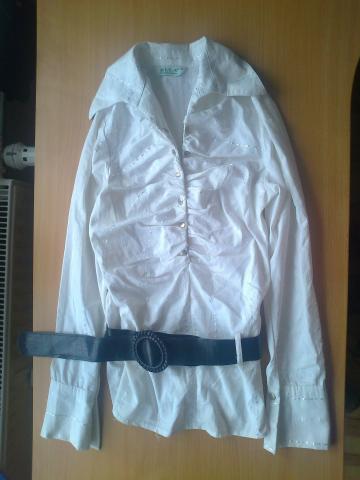 balti nauji marškinukai, patogus, tinka prie kalsikiniu kelnių ar net tymkų.Parduodu su dirzu