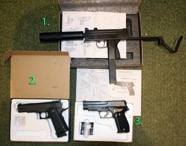 1. 160 Lt. 2. Metalinis COLT M1911 modas, šaudo gerai, vienašūvis (spyruoklinis). Problema - negalima į dėtuvę įdėti daug šovinių, nes per daug įtraukia ir stringa. Jei dedant kelis šovinius, šaudo gerai. Kaina - 70 Lt. 3. Dujinis USP su metalinėmis dalimis, gamintas berods Taivane. Tai šaudo, tai nešaudo, nežinau, kas yra. Įsigijus šaudė puikiai, gal kas užstrigo. Gali būti, kad užtektų išardyti ir perrinkti. Pusiau automatinis. 90 Lt.