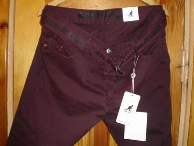 Parduodu naujus džinsus "Kangol". Violetinės spalvos, su diržu. Dydis 34W S. Galima siūlyti ir mainus.