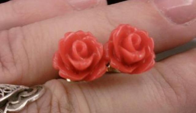 Niekada nenesiotos, naujos. Raudonas spalvas. Paauksuoti pagrindai. Kaina 8 lt