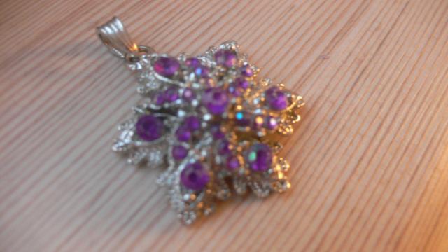 Nenaujas, bet niekada nenaudotas ir nenesiotas pakabukas :) Padarytas is metalo su daug violetiniu akmenuku.
