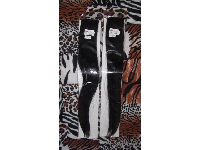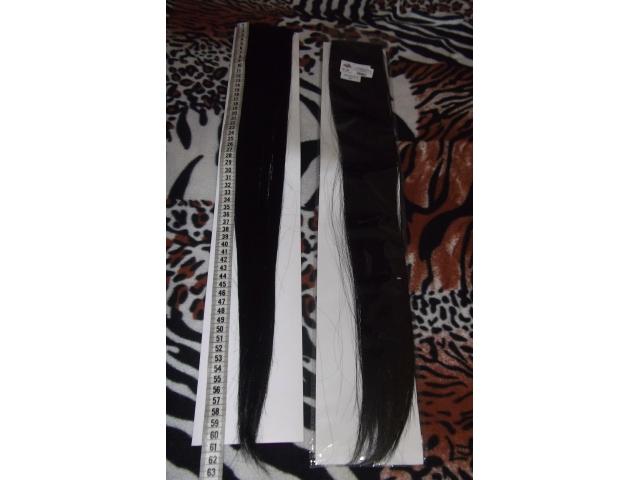 Ilgis toks pats kaip manųjų plaukų-pirmoji foto. Juodi tresai 63cm. Nuostabus dalykėlis. Jūsų perkami bus įpakuoti. Visai galvai eina 5 dalys. 3 dalys po 2 sagučius, 2 dalys po 1 sagutį. Ypač aukštos kokybės. Pati nešiojau, patvirtinu,kad puikūs! Elgiamės kaip su savo plaukais, dažome,plauname,sukame ir darome ką tik norime :) Turiu vietoje, nereikės laukti jokių atsiuntimų kurie trunka apie mėnesį. Siuntimas +5LT prie sumos.