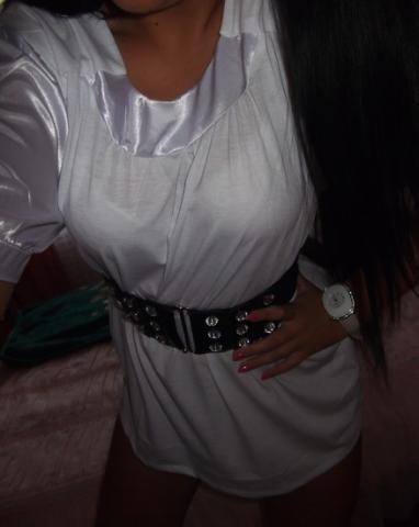 Baltos spalvos tunika su atlasu. Rankovės ir kaklas atlasiniai, visa medvilninė, labai puošniai atrodo :) Parduodu be diržiuko, nauja su etiketėmis. Dydis tinkamas 38S-M ir 40M. Siuntimas +5lt prie sumos.