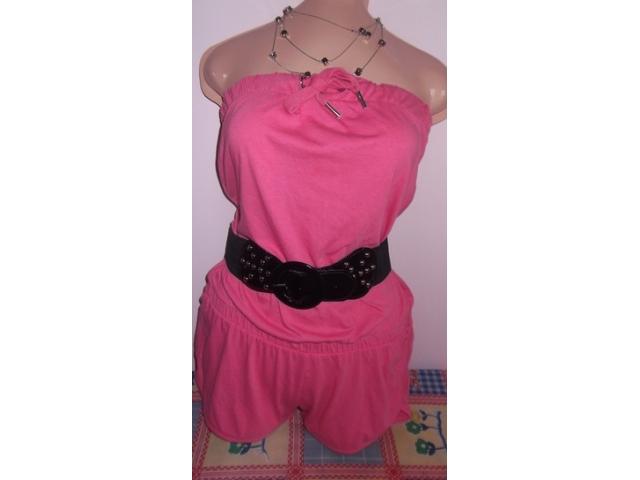 Ružavas barbiškas kombinezonas. Labai gražus :) Parduodu be diržo ir be karolių :)* Plius viršuje pamestas raigštukas, bet siuvėja pataisiusi,dėl to viskas čiki :) Siuntimas +5lt prie sumos.
