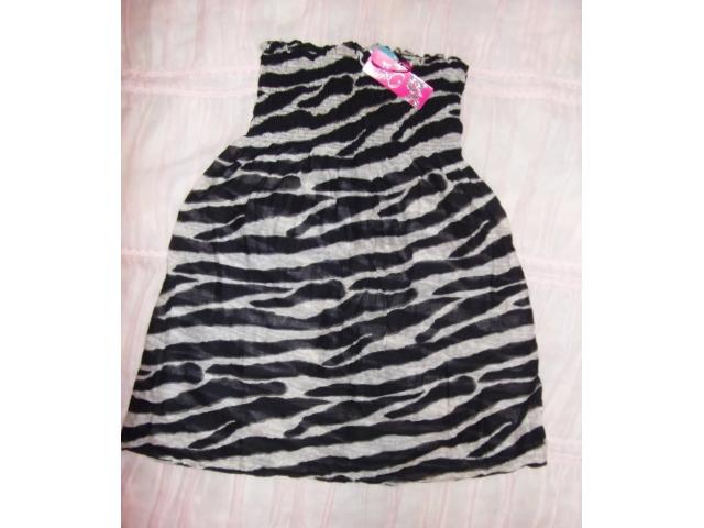 Naujas rūbelis. Zebrinio rašto,puikiai atrodo, vasariška, lengvutė paplūdimio. Reali spalvytė tokia kaip ant lovos ir 1-oje ft, ant manęs kambario apšvietime nutamsinta. Viršus tamprus iš gumos, tad nuo krūtinės nekrenta, su ja galima jaustis drąsiai :) +p.i 5LT