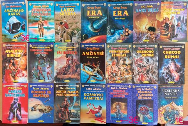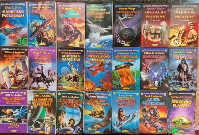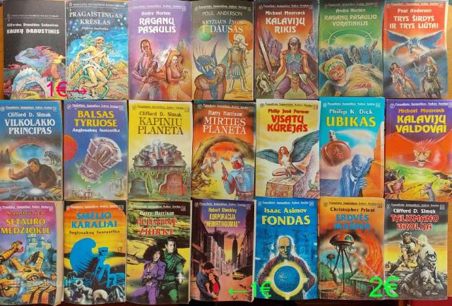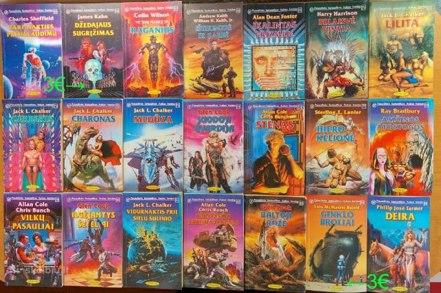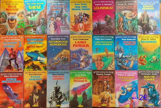 Parduodu Pasaulinės fantastikos aukso fondo knygas nuo 1 iki 142. Kainos ir knygų pavadinimai matosi foto nuotraukose. Vienetais neprekiauju, tik ne mažiau kaip po 10, jei perkate 20 vnt. ir daugiau, kaina žymiai derinama. Tel.Nr. 868355773. Galiu siųsti paštomatu į kitą miestą.