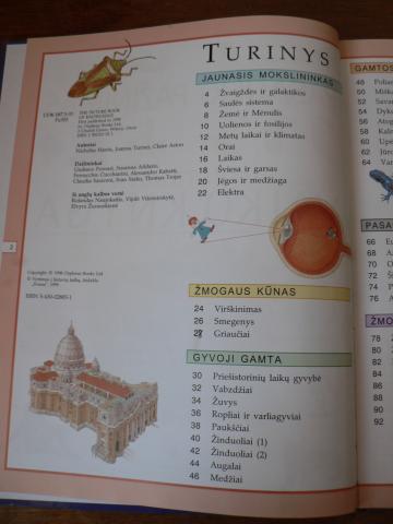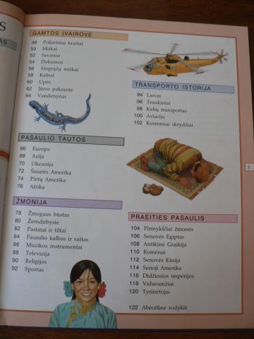 Enciklopedija aprėpia visas pažinimo sritis: mokslą ir religiją, istorines epochas ir žmogaus kūną, Saulės sistemą ir žmonijos istoriją, laukinę gamtą ir klimatą, geografiją ir reaktyvinių lėktuvų išradimą. Visos sritys pateikiamos atskiruose skyriuose, kurie pažymėti skirtingų spalvų paraštėmis. Knygoje gausu teminių sąsajų, žemėlapių, joje rasite visų pasaulio valstybių vėliavas bei išsamią abėcėlinę rodyklę. „Šviesa“, 1999 m., 128 psl.