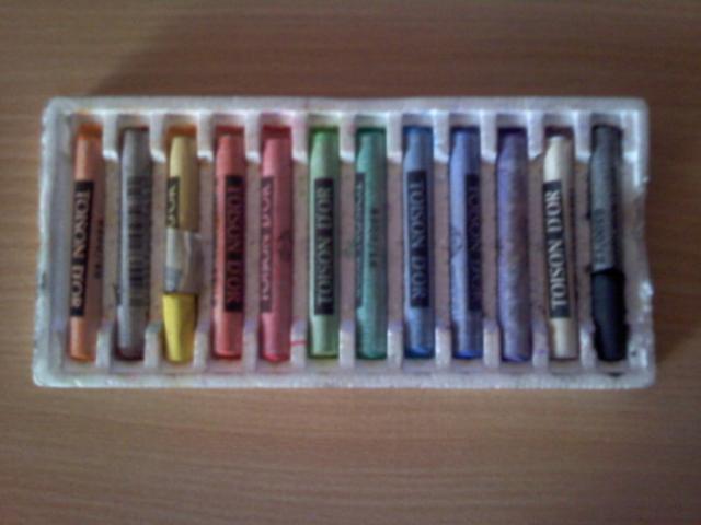 pasteles 12 spalvu, tik dvi spalvos suluzusios