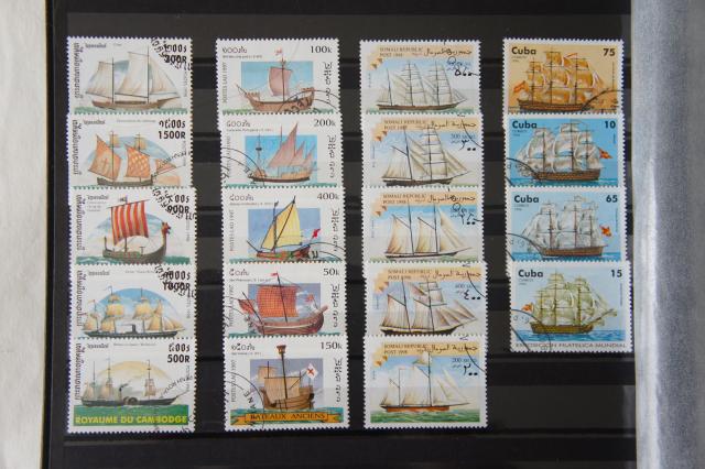 Pašto ženklų serijos su laivais iš kairės: 1. 1998 m. Kamodžios pažto ženklų serija su laivais 2. 1997 m. Italijos pažto ženklų serija su laivais 2. 1998 m. Somalijos pažto ženklų serija su laivais 3. 1996 m. Kubos pažto ženklų serija su laivais
