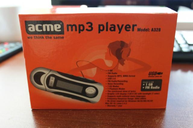 naudotas, bet labai patogus muzikos klausymui. man asmeniškai, toks labai gerai, nes telpa visur, bet kada gali išsitraukti. dedasi viena AAA baterija. turi defektą - dangtelis, kur atsidaro ir įsideda baterija, šiek tiek iškritinėja, bet tai tikrai ne problema muzikos klausymuisi. 1GB. pridedu ir mielas ausines, labai patogias - pilka virvutė užsideda ant kaklo, o prie jos pritvirtintos ausinės. su mielu blizgučiu : ) + dėžutė.
