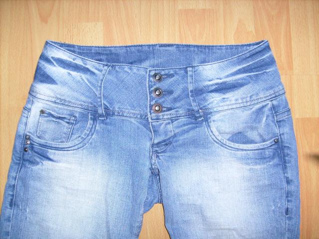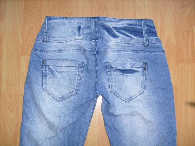 Nauji labai patogūs džinsai, apačioje šonuose užtrauktukai, šiek tiek glamžyti. Prašytas S dydis, bet labiau tiktų M, nes man per dideli, o nešioju S. Užsidėti tik pora kartų, jokių defektų nėra :)