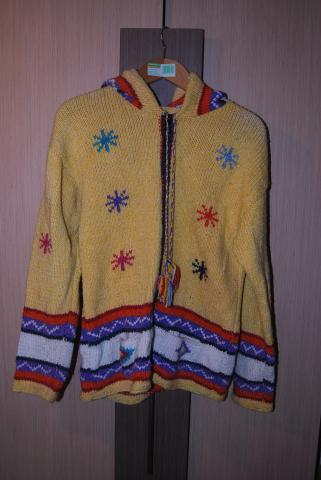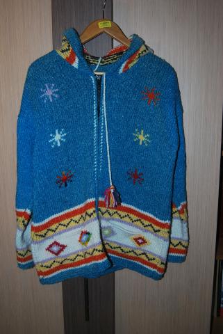 Megztinis yra šiltas, vilnonis. Spalvotas ir labai labai žaismingas. Su ilgu kapišonu. Turiu du tokius megztinius abu ir parduodu. Kaina po 80LT Atsivežti iš Ekvadoro, tad tikrai bus tokie vieninteliai