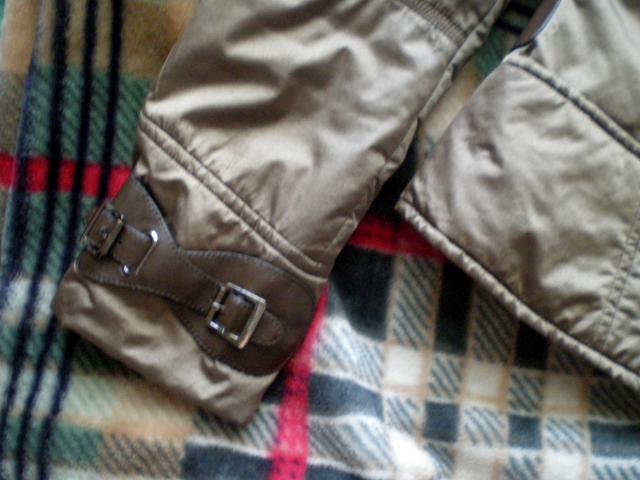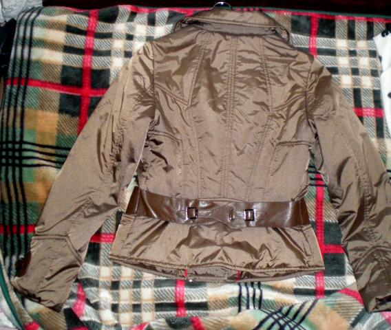 Pavasarinė/rudeninė striukytė, šiltos rudos spalvos. Šilta, patogi, geros būklės. Pamušaliukas vienoj vietoje pablukęs, bet apsimovus striukytę nesimato. Nuotraukose nesimato, tačiau gerai įsižiūrėjus kai kuriuose vietose striukytės medžiaga pablukusi ir patamsėjusi (po apykakle, po diržiuku nugaroje, rankovės pusė, kuri liečiasi su striukyte apsimovus..). Dydį rašo S/L (nuotraukoje S/M). Ilgis ~60cm.