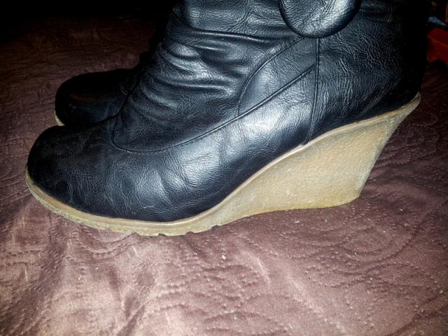 su siokiu tokiu pasiltinimu pavasariniai aulinukai ant platformu, dydis 38, siaip jokiu zymiu defektu nera,, tik vieno batuko vidinej pusej pasilupusi odyte, taciau nesimato vaikstant, todel juos dar nesioti ir nesioti. defektas matosi 5 foto