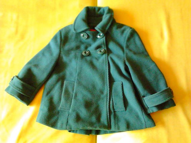 kelis kartus uzsidetas paltukas. zalios spalvos, vidui rozinis silkinis pamusalas :) prideta atsargine saga :). spalva ryskesne nei nuotraukoje.