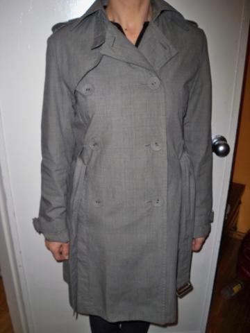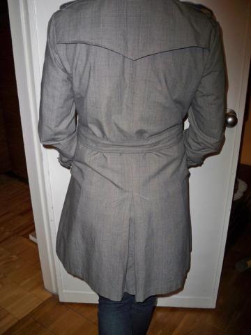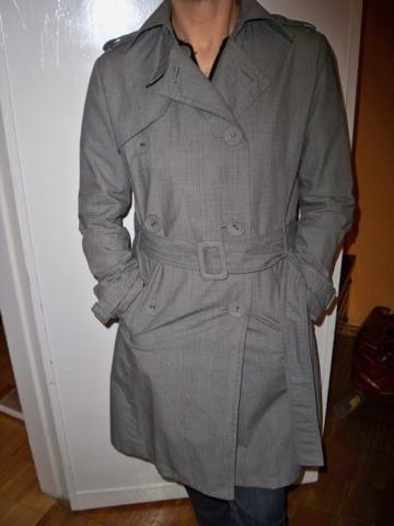 Labai dailus, pilkas, smulkiu langeliu,vidus su juodu pamusalu, tvarkingas.tiks nuo m iki....nors man ir ant S graziai ziurisi, nes foto ant s daryta..