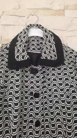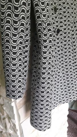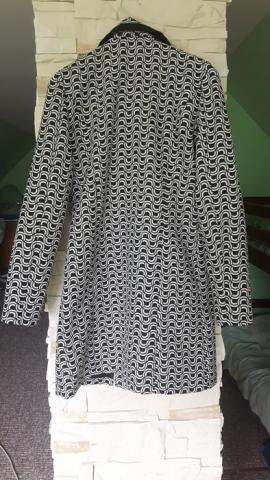 Paltukas juodas su baltu ir pilku, stilingas užsisega sagutemis. Ilgis 90cm, krutine 41cm, rankoves ilgis 59cm.+siuntimas