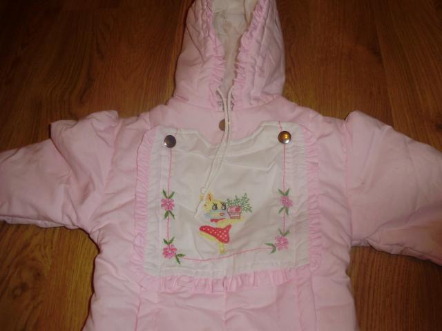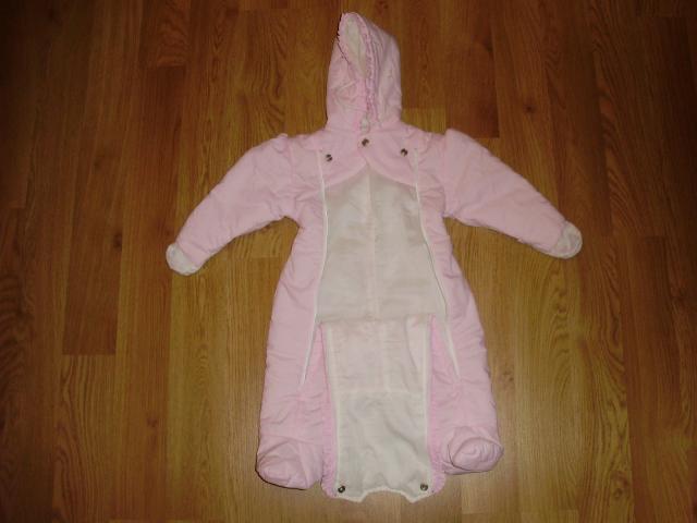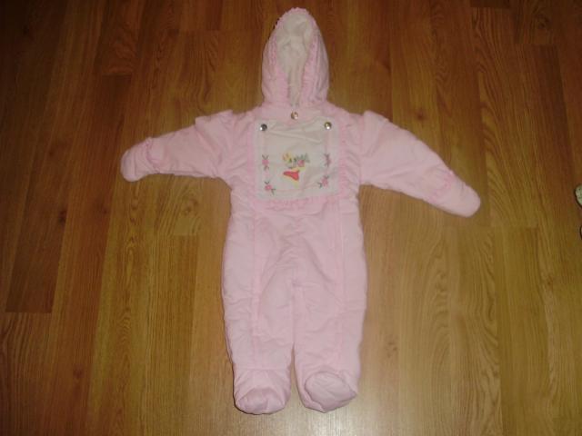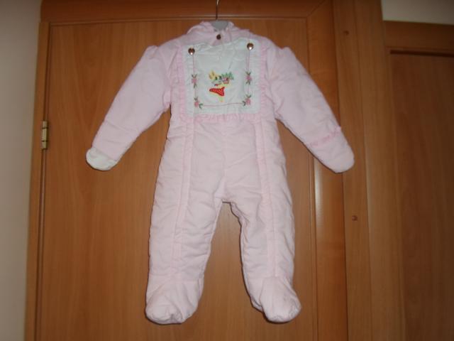 Gražus kombinezonas. Yra pirštinaitės, kurios atsilenkia. Mažai dėvėtas. Tinka maždaug 6-9 mėn, 74cm. Išmatavimai: ilgis (nuo viršaus iki apačios kulniuko) - 60 cm, plotis - 64 cm, rankovės ilgis (be pirštinaitės) - 27 cm.