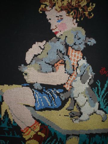 Senas,issiuvinetas meno kurinys.Papuos vaiko kambari.0.52x0.65