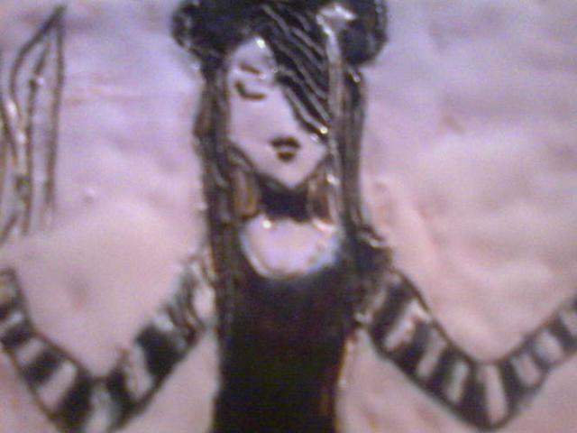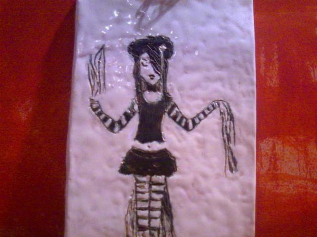 maždaug A5 formato molinė lentelė kurioje išpiešta geiša (kabinama ant sienos)