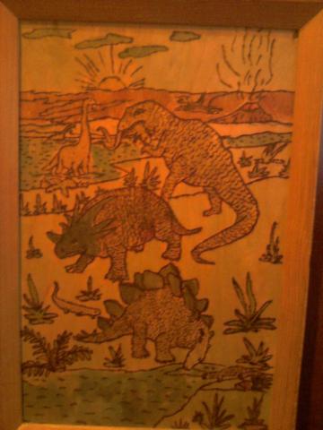 foto prastos kokybes. paveikslas puikus."priesistoriniai gyvunai"(32x48cm)