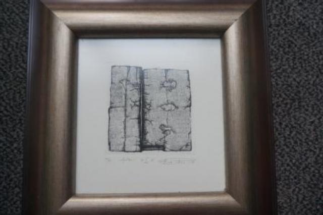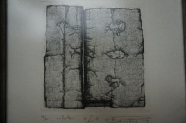 Autorius Egidijus Rudinskas. Paveikslo rėmo matmenys: 30*29. 1999, ofortas, 42*50