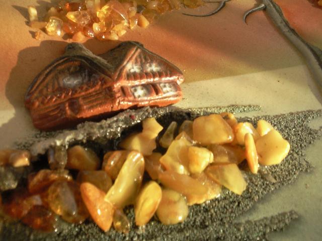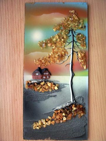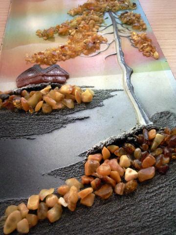 Paveikslas su gintarais be remeliu. Stovis geras . Daug dideliu gintariuku.