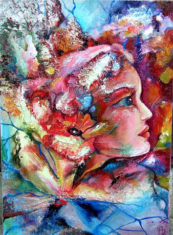 aliejine tapyba,ant drobes ,su poremiu. 70x50cm. vertas demesio paveikslas. Pavadinau'' tarp spalvu''.