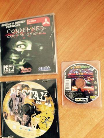 Siaubo žaidimas CONDEMNED criminal origins, antras žaidimas Postal 2 pirmoji versija o mažasis dovanų jame yra mini žaidimai pinball ir t.t. tai pat skirta pc, diskai nesubraižyti būklė gera.