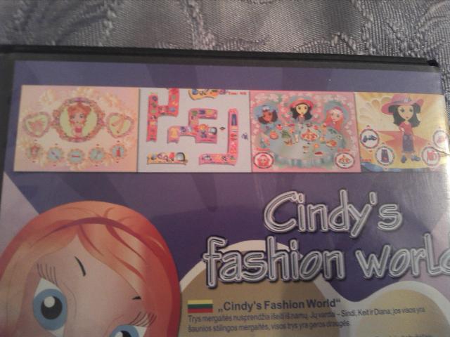 Geras žaidimas mergaitėms Cindy's fashion world. Yra penki žaidimai. 1) Apengti mergaites pasirinktais drabužėliais. 2) Prižiūrėti jų gyvūnus 3) Eiti į kavinę 4) Padaryti joms šukuosenas ir makiažą 5) Eiti kartu apsipirkti. Žaidimas naudotas LABAI nedaug, tik kelis sykius. Labai įdomus : ) Žaidimas lietuviškas, yra gale aprašymai ir paveiksliukai. Taip pat, iš žaidimo galima apsispauzdinti paveiksliukus!!! : ))