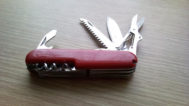 peilis kuris turi 2 pjuklelius, zirkles, atsuktuva pliusini, atidarytuvu kelta.