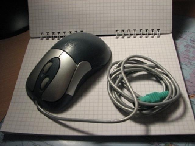 4 klavišų ir 2 ratukų "A4 Tech" melsvai pilka pelė, mainoma su CD. Jungtis tradicinė, bet veikia ir per USB adapterį.