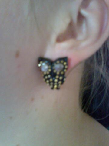 Nauji auskariukai. Viena akutė kreiviau įklijuota. Bandžiau apvedžioti tą akutę, tik nelabai aiškiai matosi, nes nuotraukos prastos kokybės...