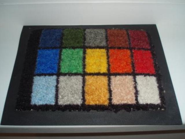 spalvotas, virsus kaip paprastas kilimas (siek tiek apsiveles), apacioje guma, patogu, slysta gerai, tik reikia priprasti. labai smagus :)