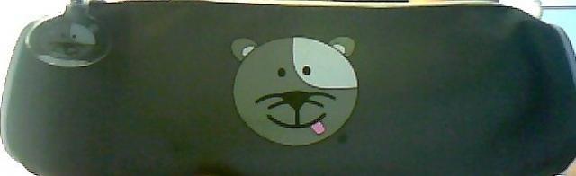 mazai naudotas pilkos spalvos penalas su linksmu paveiksleliu :)